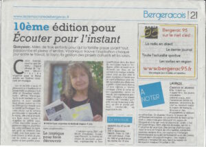 Elle nous présente ce soir sa première mise en scène en solitaire : ‘Fragments d’une petite comédienne de campagne’ (puisque périgourdine depuis quelques temps), suivi de ‘Ouf’. Dans l’intimité d’une petite église, une trentaine de spectateurs, en voiture !