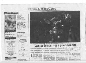 1er CONCERT du Festival Ecouter pour l’Instant, ce lundi 9 octobre dans l’église de Queyssac en Dordogne.